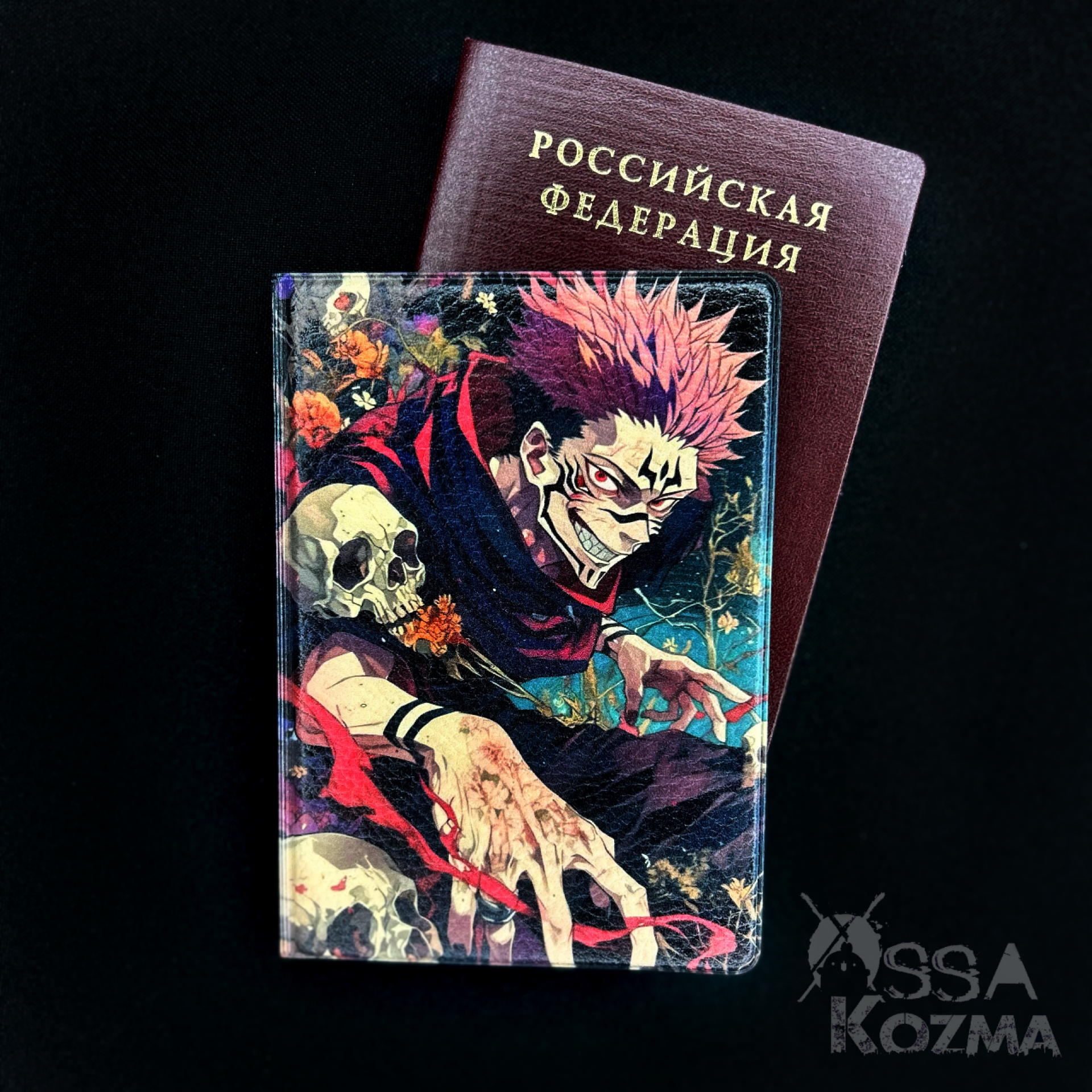 Ключевые слова для поиска: Обложка на паспорт Сукуна, Ryomen Sukuna, Магическая битва, Jujutsu Kaisen, Король Проклятий, аниме обложка, стильный паспорт, мерч Сукуны.